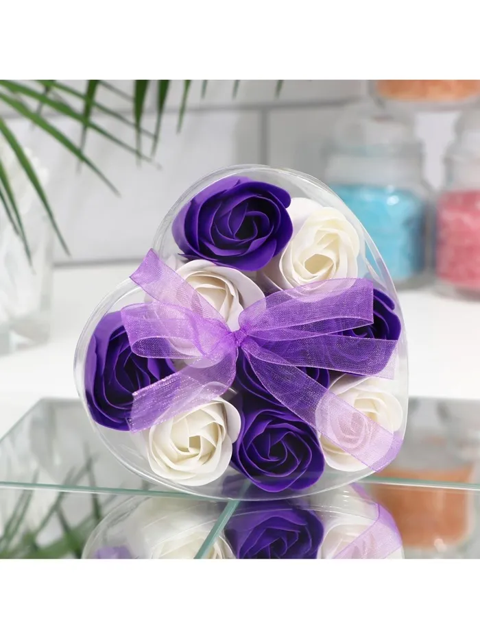Мыльные розочки, фиолетовые и белые, набор 9 шт.