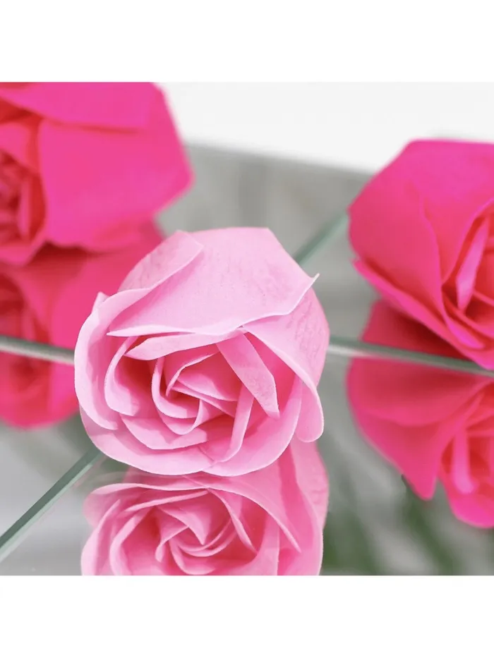 Благодаря точному повторению мелких деталей мыльные розы схожи с настоящими цветами. Композиция наполняет помещение тонким и ненавязчивым цветочным ароматом.