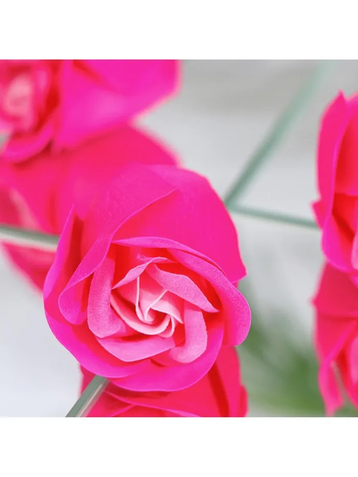Благодаря точному повторению мелких деталей мыльные розы схожи с настоящими цветами. Композиция наполняет помещение тонким и ненавязчивым цветочным ароматом.