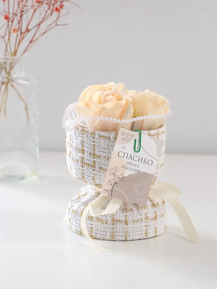 Благодаря точному повторению мелких деталей мыльные розы схожи с настоящими цветами. Композиция наполняет помещение тонким и ненавязчивым цветочным ароматом.