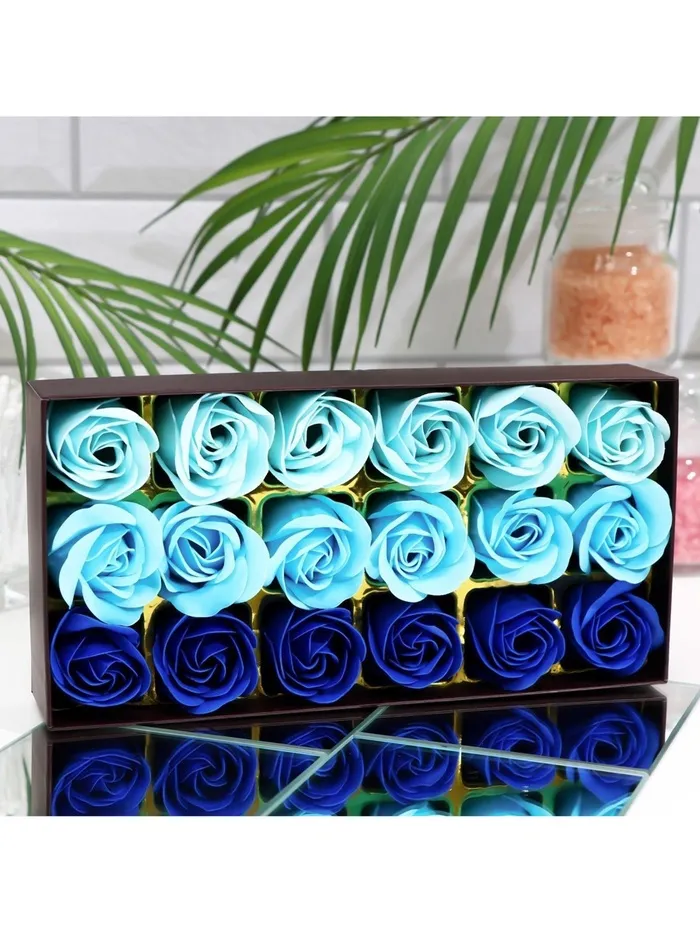 Мыльные розы, синие оттенки, набор 18 шт. — Характеристики