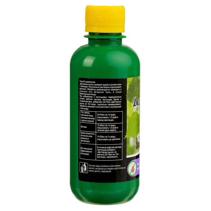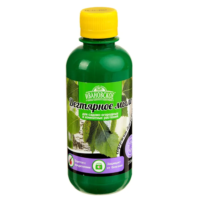 При добавлении к пестицидам: приготовьте рабочий раствор пестицида, влейте в него 25–70 мл дегтярного мыла на 10 л вещества. Тщательно перемешайте. Проводите обработку в соответствии с инструкцией к пестициду.