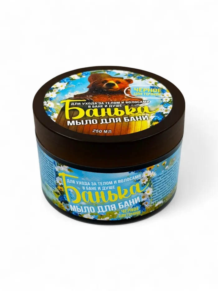 Мыло "Банька" Цветочное Чёрное создано для полноценного банного ритуала — очищающего, расслабляющего и восстанавливающего. Его густая консистенция, насыщенный натуральный состав и тонкий аромат луговых цветов делают уход за телом не просто процедурой, а особым моментом уединения и заботы о себе.