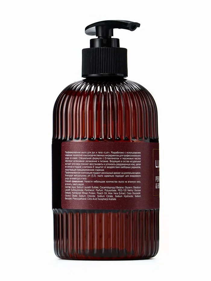 Парфюмированное мыло для рук и тела «Luir » разработано с использованием новейших технологий и высококачественных ингредиентов для профессионального ухода за кожей. Специальная формула с D-пантенолом и персиковым маслом обеспечит интенсивное увлажнение и питание. Входящий в состав натуральный экстракт алоэ вера поможет восстановить и успокоить раздраженную кожу, делая ее мягкой и гладкой, а витамины E&D защитят от воздействия свободных радикалов, предотвращая преждевременное старение.