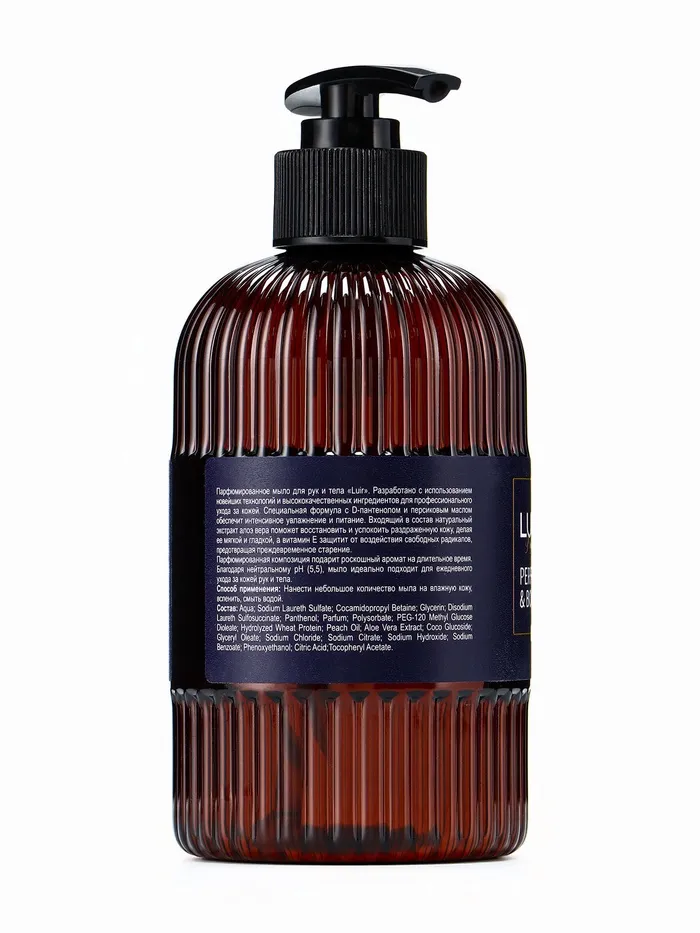 Парфюмированное мыло для рук и тела «Luir » разработано с использованием новейших технологий и высококачественных ингредиентов для профессионального ухода за кожей. Специальная формула с D-пантенолом и персиковым маслом обеспечит интенсивное увлажнение и питание. Входящий в состав натуральный экстракт алоэ вера поможет восстановить и успокоить раздраженную кожу, делая ее мягкой и гладкой, а витамины E&D защитят от воздействия свободных радикалов, предотвращая преждевременное старение.
