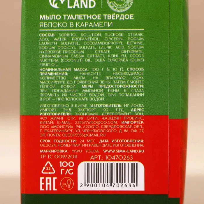 Мыло для рук кусковое URAL LAB ho-ho-ho, 80 г, аромат яблока в карамели, Новый Год — Характеристики