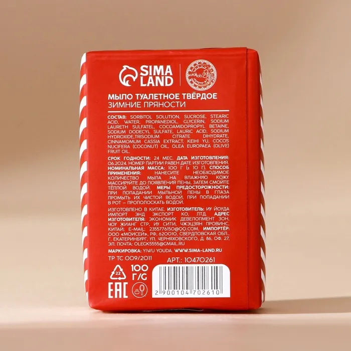 Мыло для рук кусковое URAL LAB Warm winter, 80 г, аромат зимних пряностей, Новый Год — Характеристики