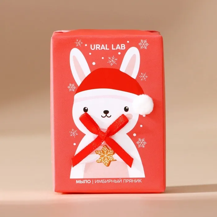 Мыло для рук кусковое URAL LAB «Зайчик», 80 г, аромат имбирного пряника, Новый Год — Характеристики