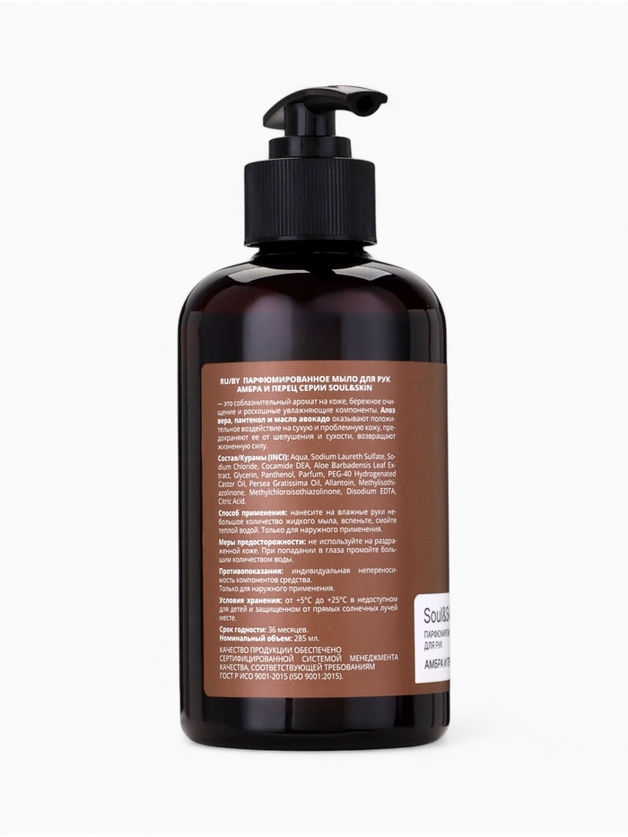 Мыло для рук парфюмированное Soul&Skin амбра и перец, 285 мл — Характеристики