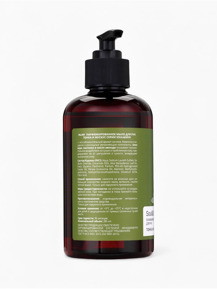 Мыло для рук парфюмированное Soul&Skin тонка и мускус, 285 мл — Характеристики