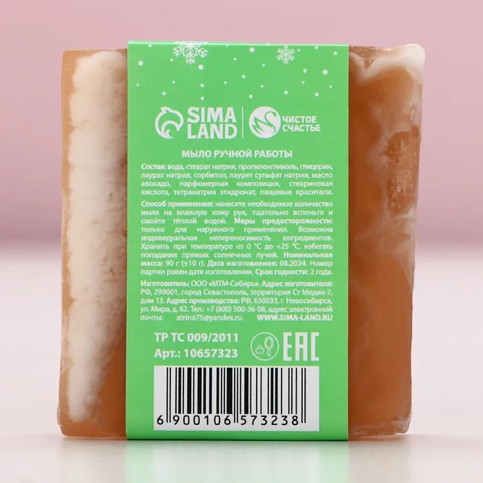 Мыло для рук ручной работы, 90 г, аромат кедровых ветвей, Чистое счастье — Характеристики