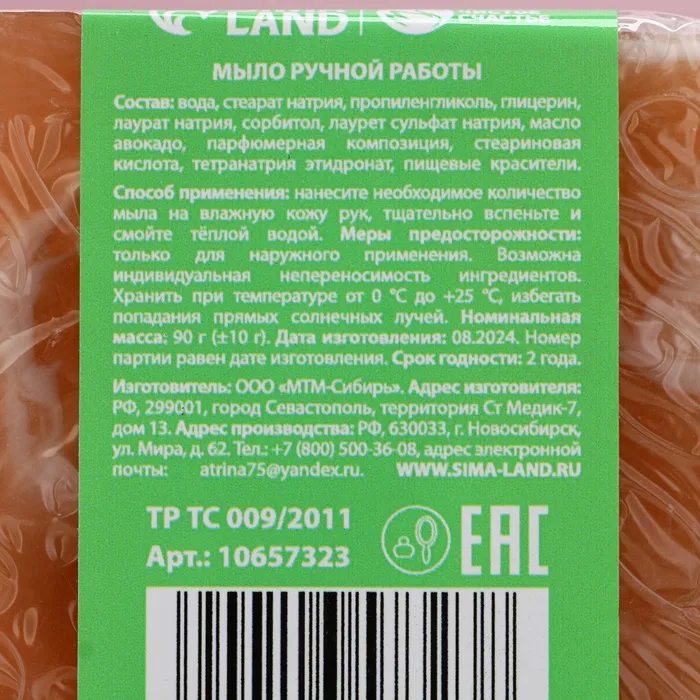 Вид мыла: Ручной работы