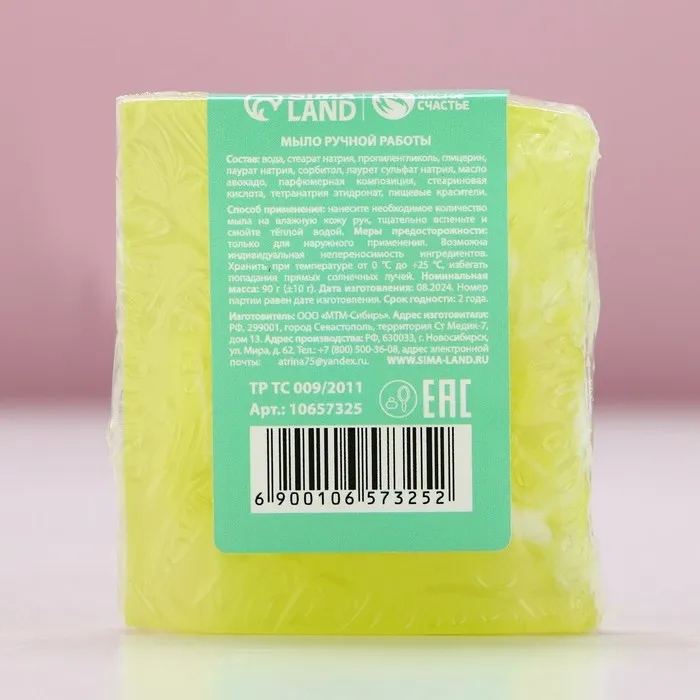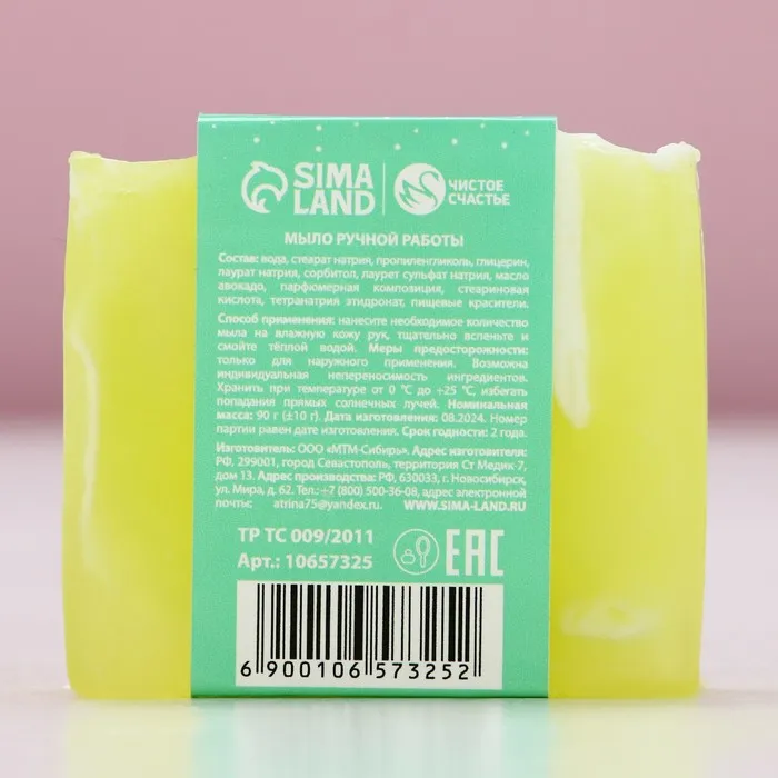 Мыло для рук ручной работы, 90 г, аромат лимона и мелиссы, Чистое счастье — Характеристики