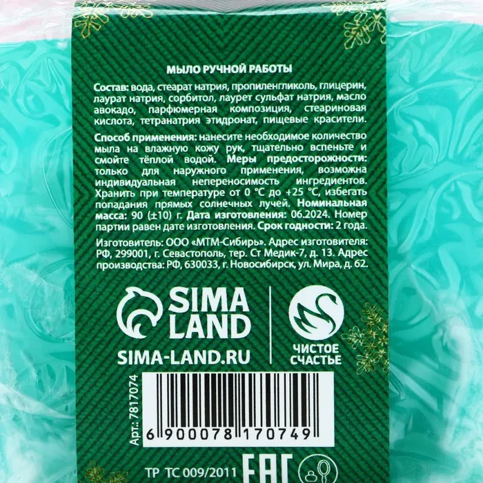 Мыло для рук ручной работы, 90 г, аромат мёда и корицы, Чистое счастье — Характеристики