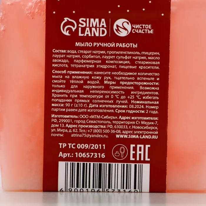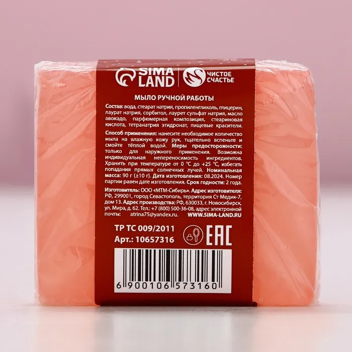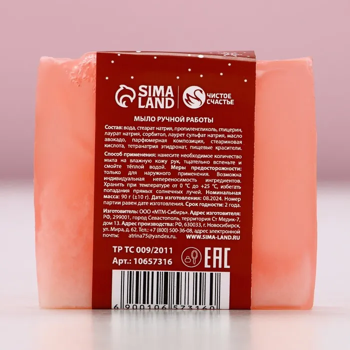 Мыло для рук ручной работы, 90 г, аромат морозная клюквы, Чистое счастье — Характеристики