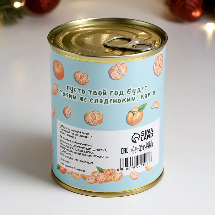 Мыло для рук в консервной банке «Как встретишь», в наборе с мочалкой — Характеристики