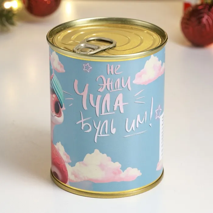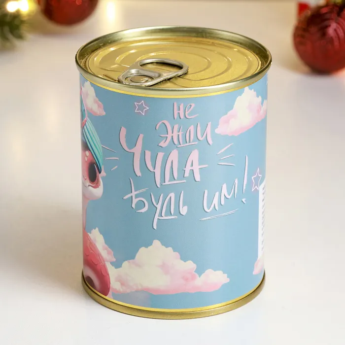 Мыло для рук в консервной банке «Не жди чуда, будь им!», в наборе с мочалкой — Характеристики