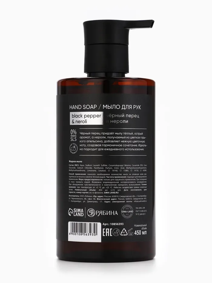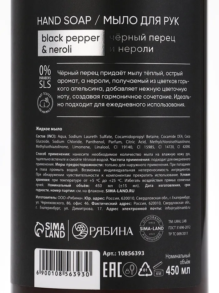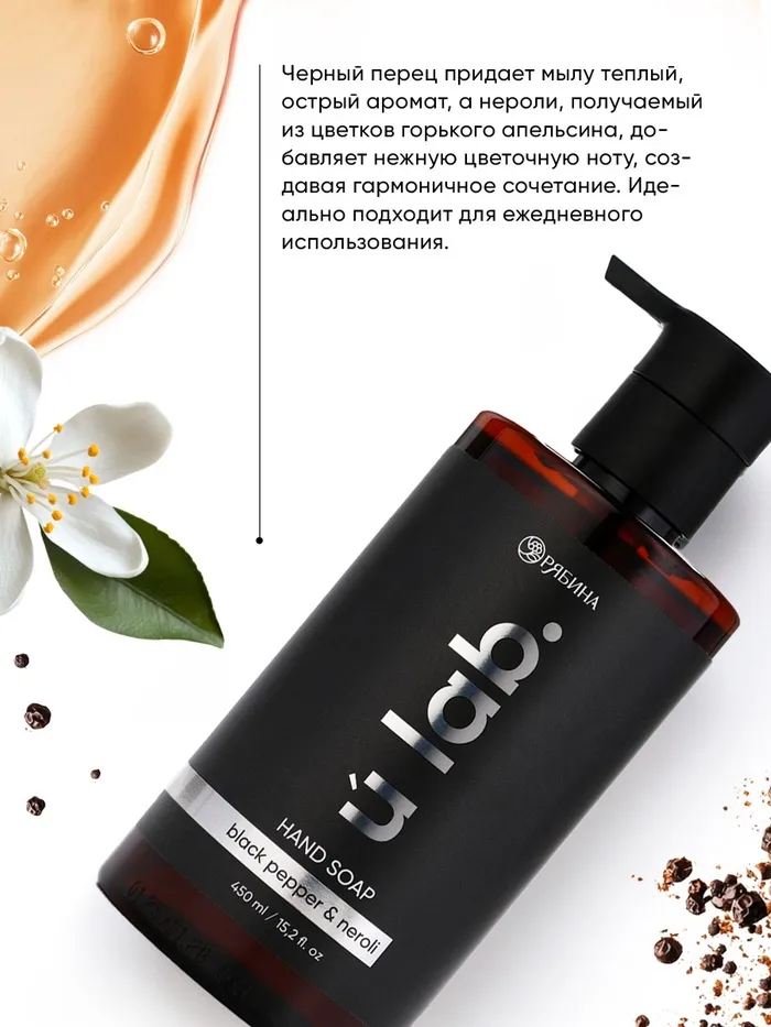 Мыло для рук жидкое, 450 мл, аромат чёрный перец и нероли, ULAB — Характеристики