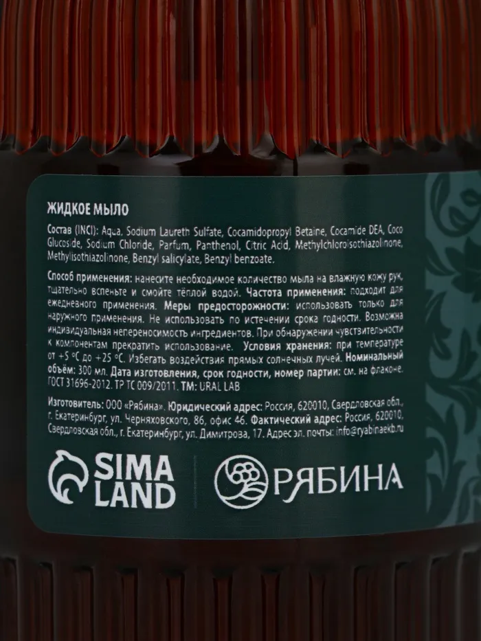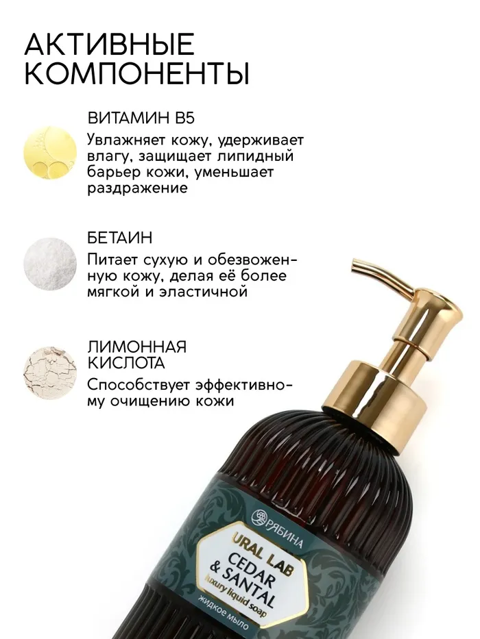 Мыло для рук жидкое, парфюмированное, с ароматом cedar & santa, 300 мл, URAL LAB — Характеристики