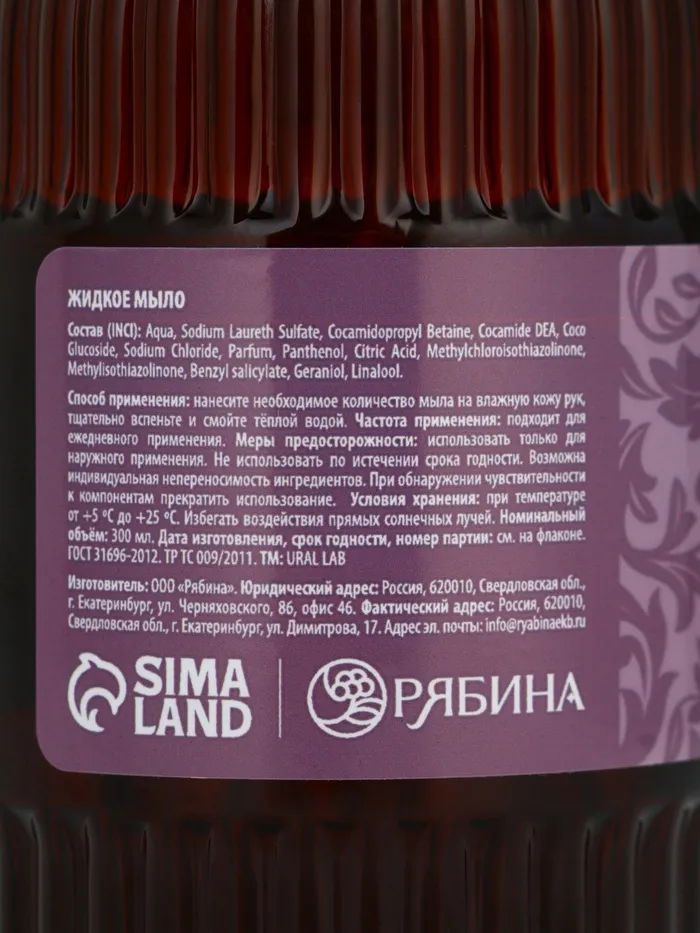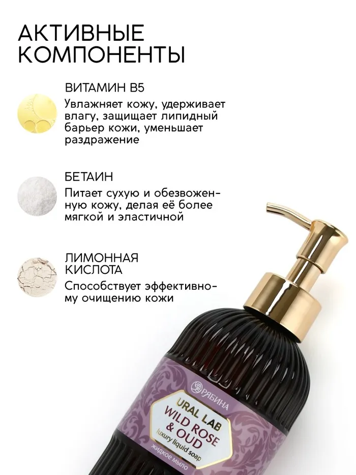 Мыло для рук жидкое, парфюмированное, с ароматом wild rose & oud, 300 мл, URAL LAB — Характеристики