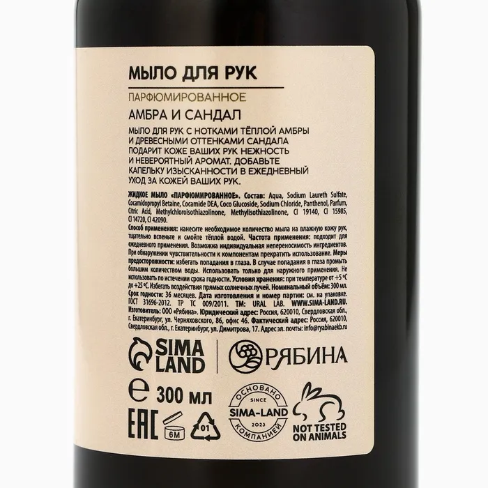 Мыло для рук жидкое URAL LAB, 300 мл, аромат амбры и сандала — Характеристики