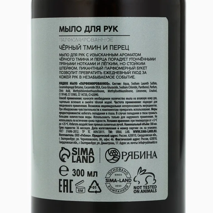 Мыло для рук жидкое URAL LAB, 300 мл, аромат чёрного перца и тмина — Характеристики