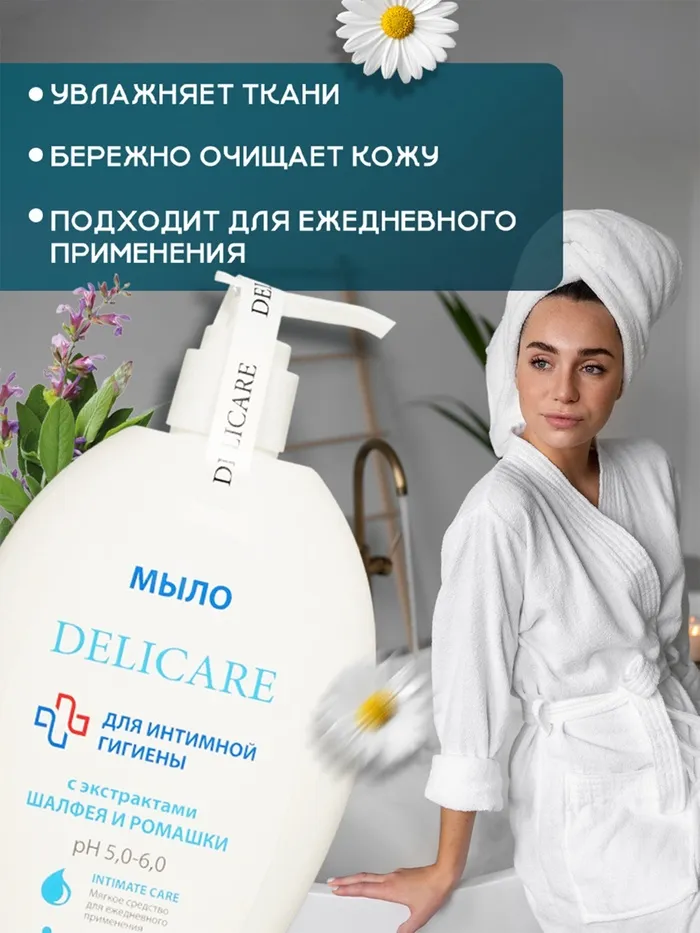 Нежное мыло Delicare создано специально для деликатного ухода за интимной зоной. Благодаря мягкой формуле без агрессивных компонентов оно поддерживает естественный баланс кожи и ощущение свежести в течение дня. Экстракты шалфея и ромашки оказывают успокаивающее и противовоспалительное действие, помогают снизить раздражение и сохранить комфорт.