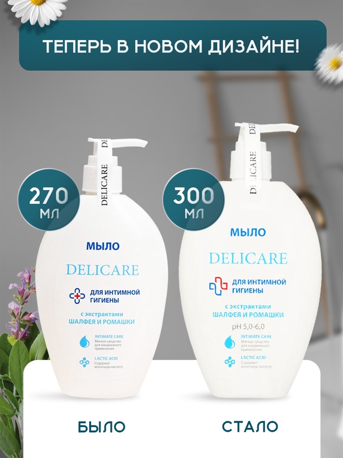 Delicare Мыло для интимной гигиены с экстрактом шалфея и ромашки, 300 мл