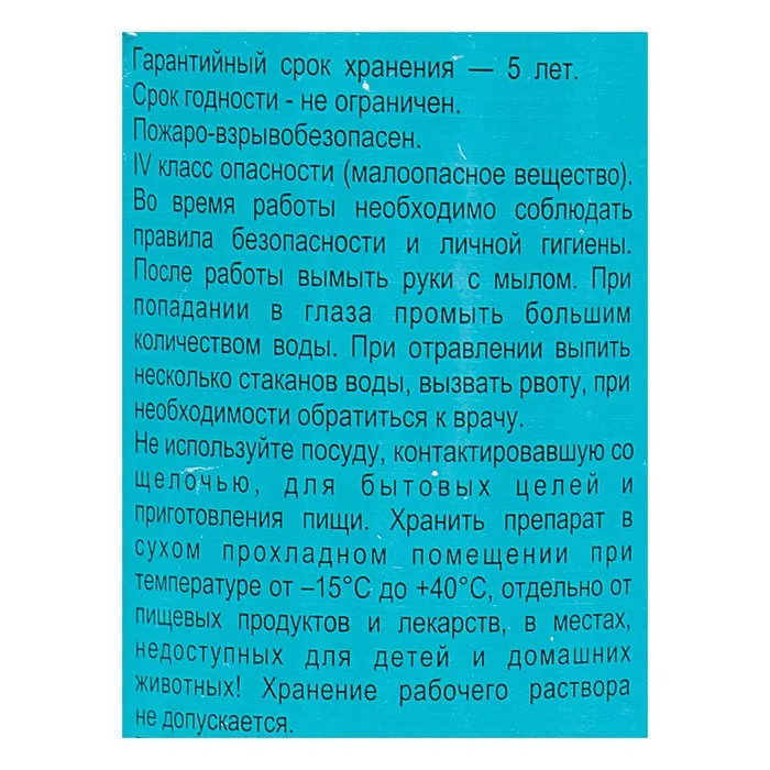 Способ применения: разведите водой в соответствии с таблицей, опрыскайте растения. Проводите обработку в утренние или вечерние часы, в сухую безветренную погоду.