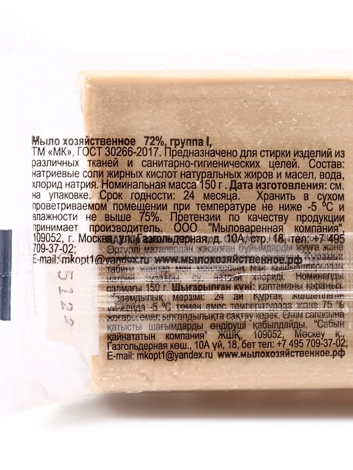 Мыло для стирки белья и санитарно-гигиенических целей.