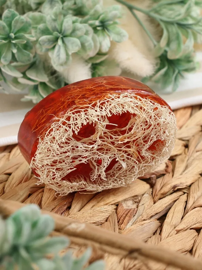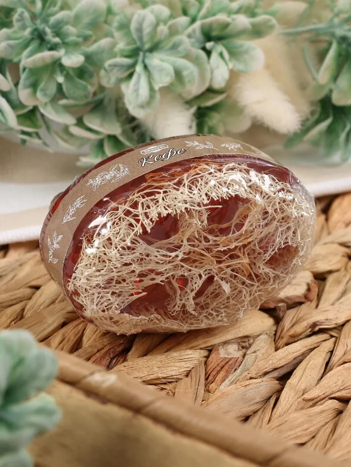 Мыло с люфой одновременно очищает кожу и скрабирует её. Это натуральное экологичное средство гигиены не вызывает аллергии.