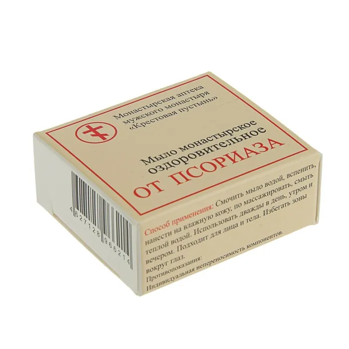 Монастырское мыло «От псориаза» имеет противозудный, антисептический, противовоспалительный, смягчающий и ранозаживляющий эффекты.