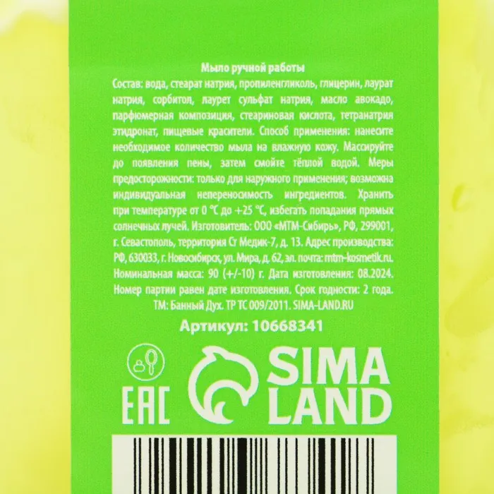 Мыло ручной работы, 90 г, аромат лимона и лайма, БАННЫЙ ДУХ — Характеристики