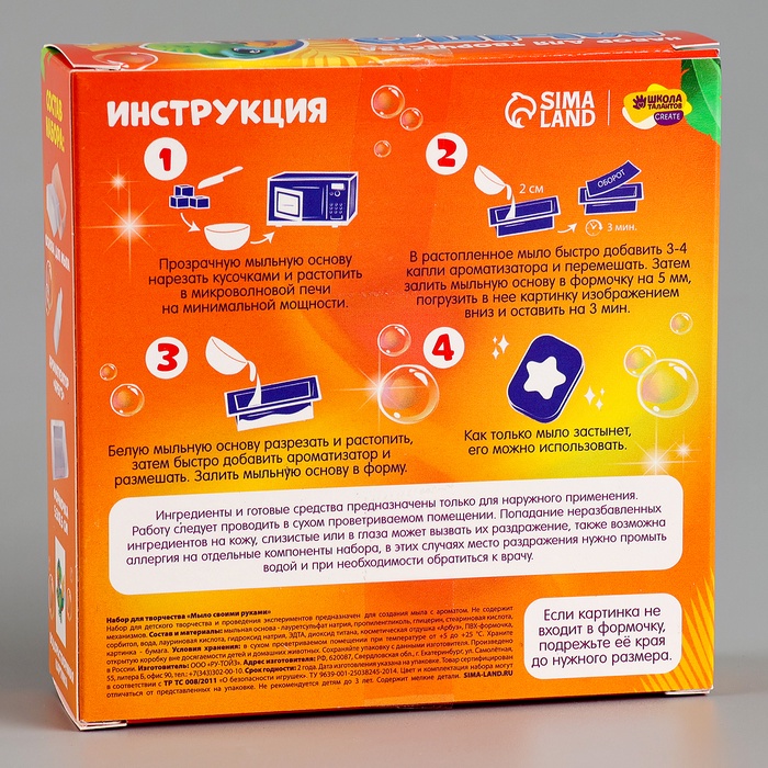 Мыловарение — это необыкновенное занятие, которое подарит положительные эмоции и поможет развить креативность, фантазию, мелкую моторику. С помощью этого набора вы сможете создать ароматное мыло своими руками.