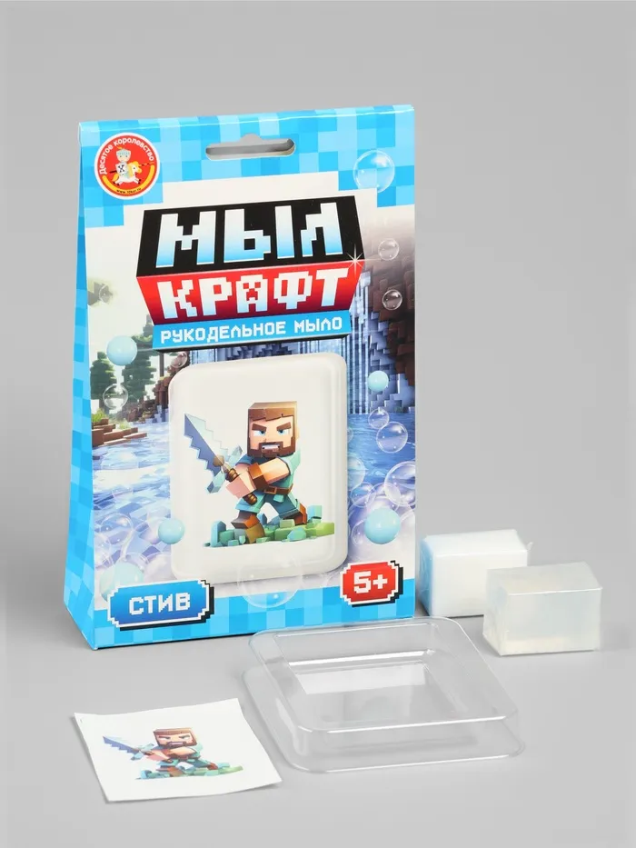 Рукодельное мыло своими руками «Мыл крафт. Стив» с картинкой - замечательный набор для поклонников известной игры! С его помощью ребенок сможет сделать приятный подарок своим близким или друзьям. Для этого потребуется внимание, ответственность и строгое соблюдение инструкции. Единственным ограничением является контроль и помощь со стороны взрослых при нагреве и манипуляциях с горячей мыльной основой.