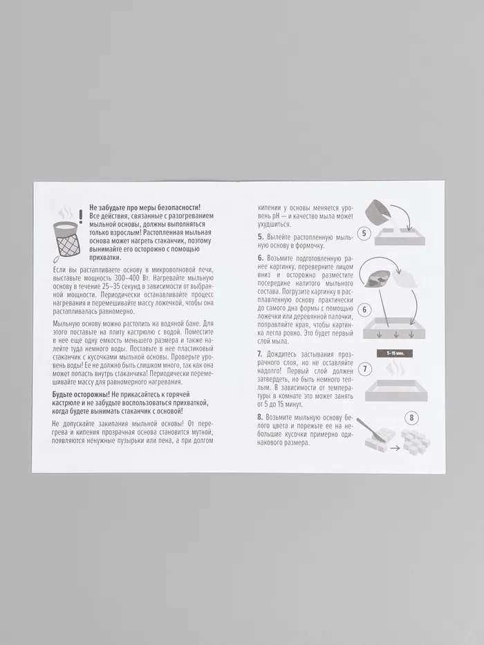Набор рекомендован для детей старше 5 лет. Все действия, связанные с разогревом мыльной основы, должны выполняться только взрослыми!
