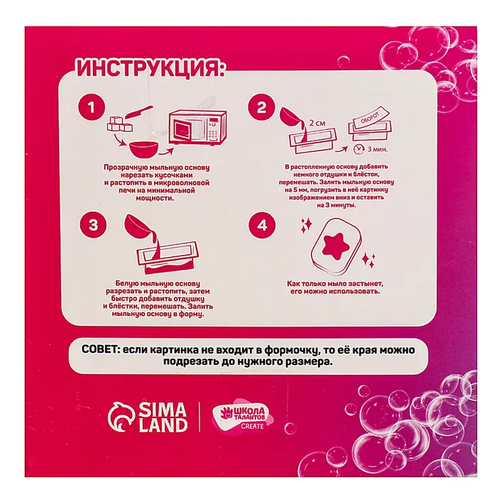 Мыловарение — это необыкновенное занятие, которое подарит положительные эмоции и поможет развить креативность, фантазию, мелкую моторику. С помощью этого набора вы сможете создать ароматное мыло своими руками.