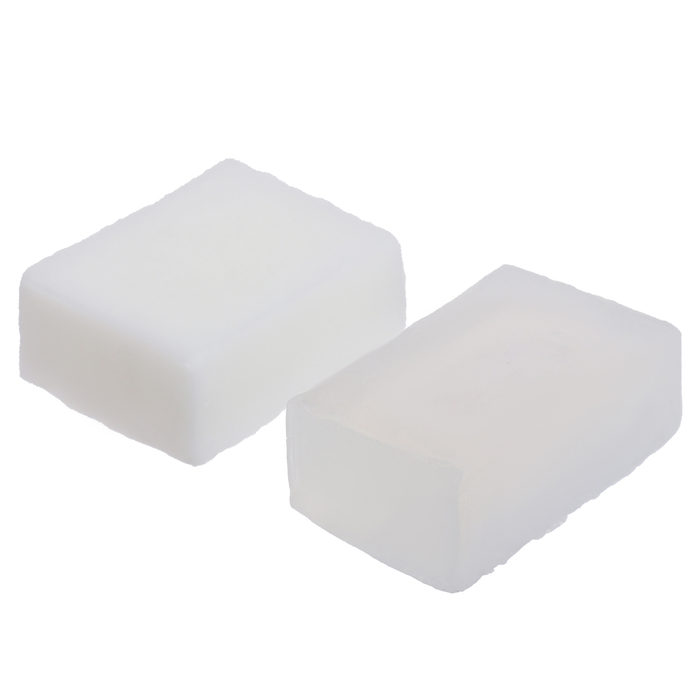- Прозрачную мыльную основу нарезать кусочками и растопить в микроволновой печи на минимальной мощности.