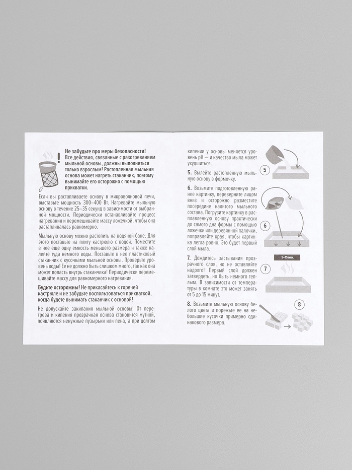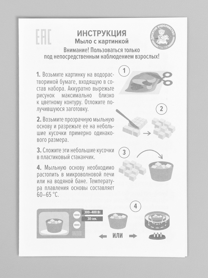 Набор рекомендован для детей старше 5 лет. Все действия, связанные с разогревом мыльной основы, должны выполняться только взрослыми!