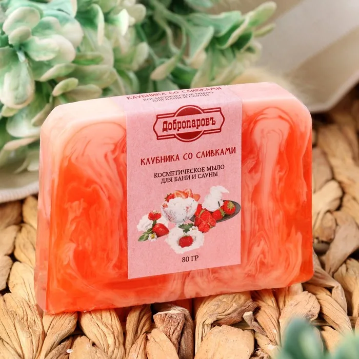 Мыло СПА - уход для бани и сауны "Клубника со сливками" Добропаровъ РУЧНАЯ РАБОТА 80 гр — Характеристики