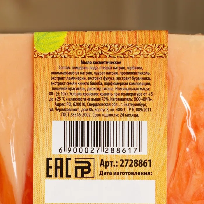 Способ применения: нанесите мыло на влажную кожу или губку, вспеньте, распределите массирующими движениями по телу, смойте водой. Рекомендуется для регулярного использования, особенно после бани или сауны.