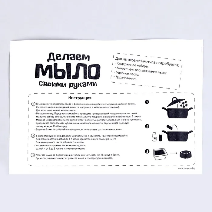 С помощью этого набора вы сможете создать ароматное мыло в домашних условиях. Самое главное, что результат своих трудов можно использовать каждый день.