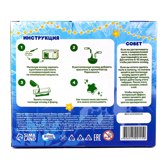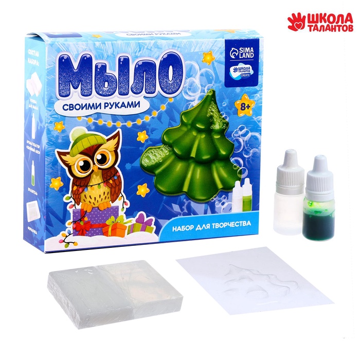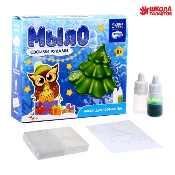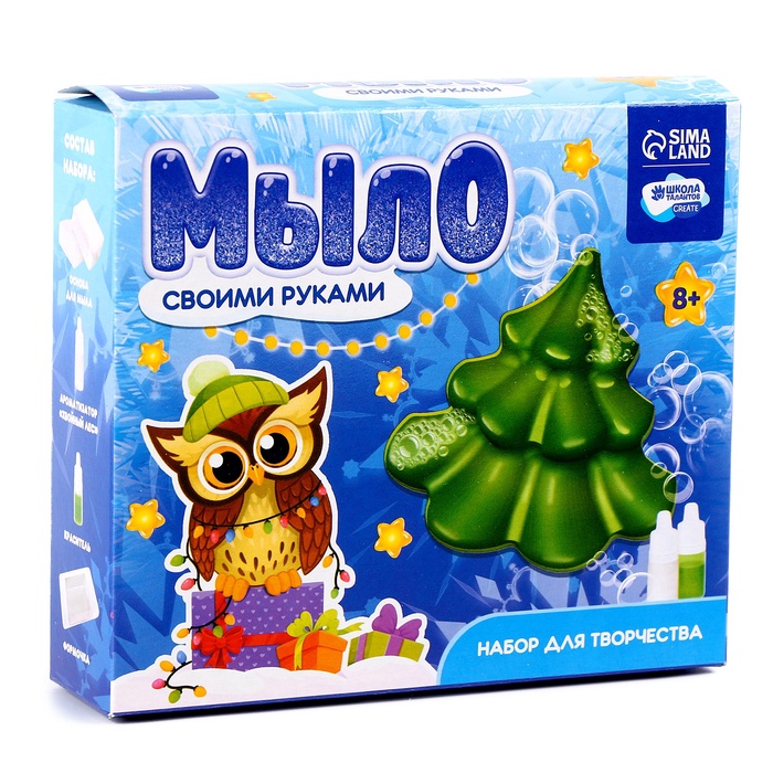 Погрузиться в ремесло мыловара, почувствовать себя создателем чего-то прекрасного и использовать результат своих трудов каждый день — всё это, а ещё и увлекательное времяпрепровождение подарит набор Мыло своими руками на новый год «Ёлочка», набор для творчества.