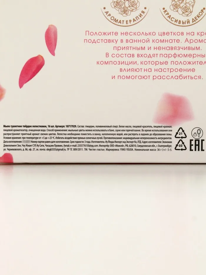 Мыло твёрдое лепестковое «С 8 марта», 16 шт., нежно-розовое, Чистое счастье — Характеристики
