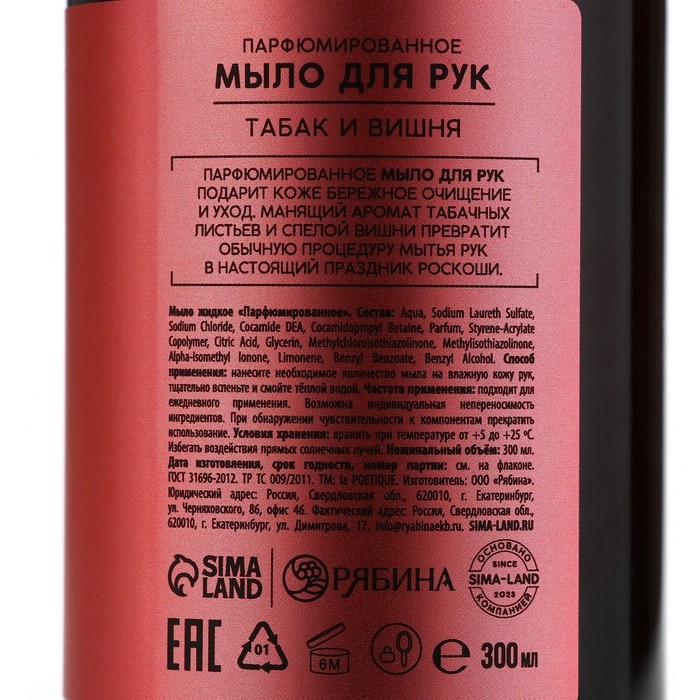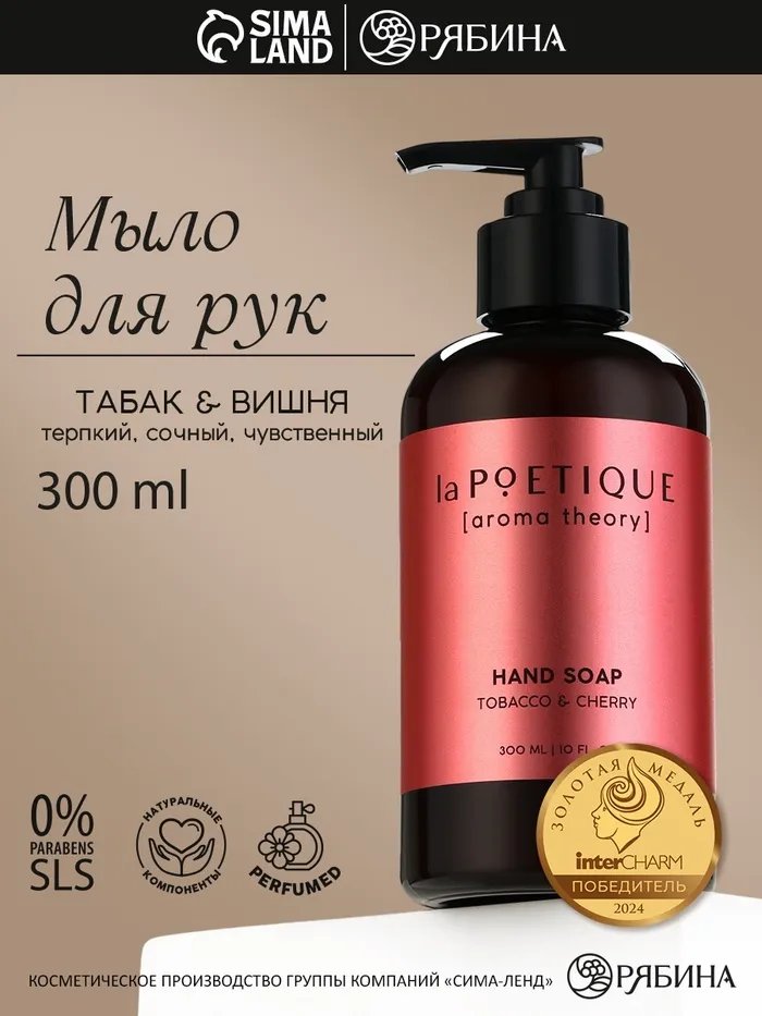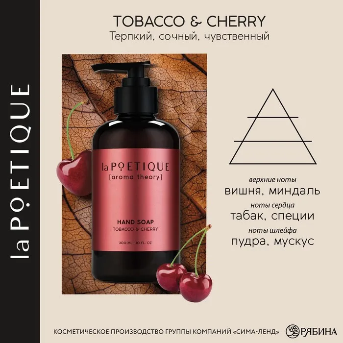 Мыло жидкое для рук, 300 мл, аромат табака и вишни, LA POETIQUE — Характеристики