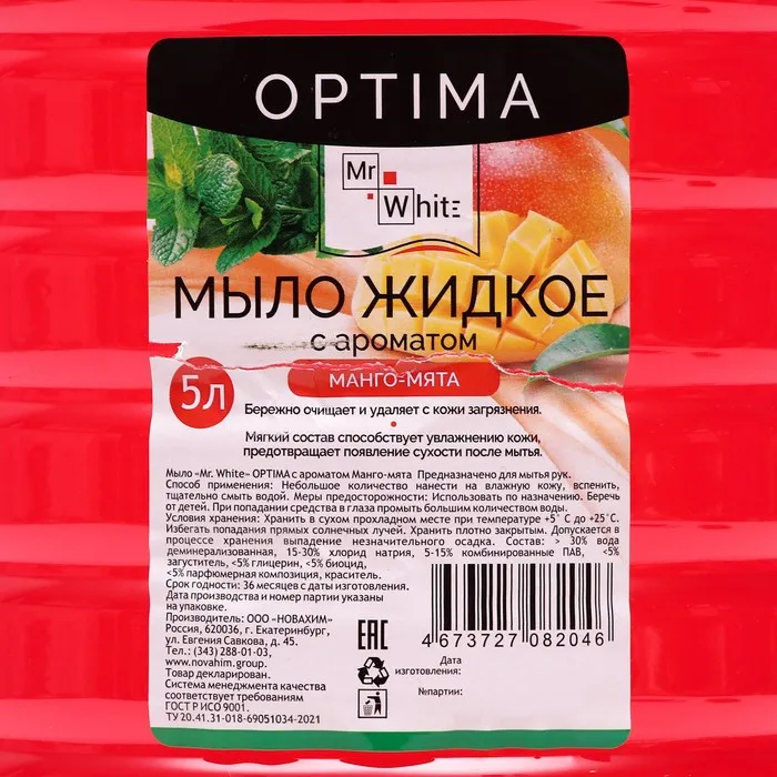 Мыло жидкое Mr.White OPTIMA "Манго-Мята", 5 л — Характеристики