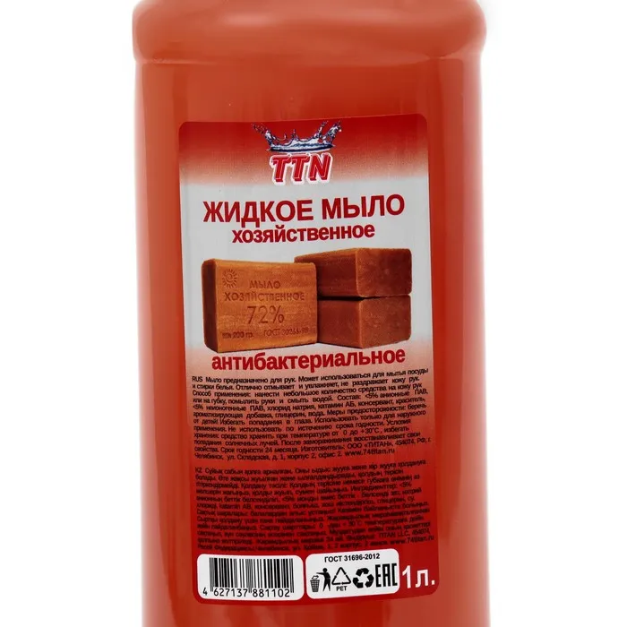 Жидкое крем-мыло TITAN "Хозяйственное", с антисептическим эффектом очищает кожу, не травмирует и не сушит ее, благодаря глицерину, входящему в состав.