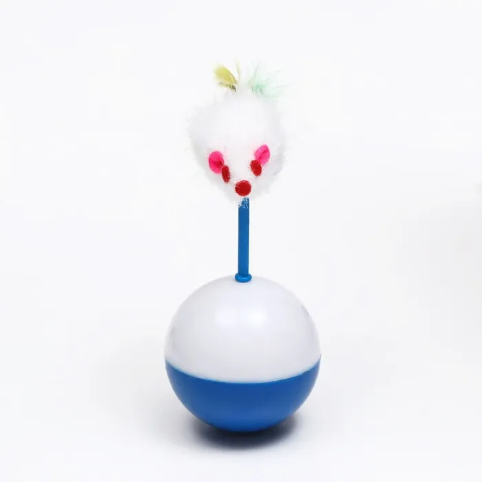 Мышь-неваляшка из искусственного меха на шаре, 11 х 6 см синий/белый