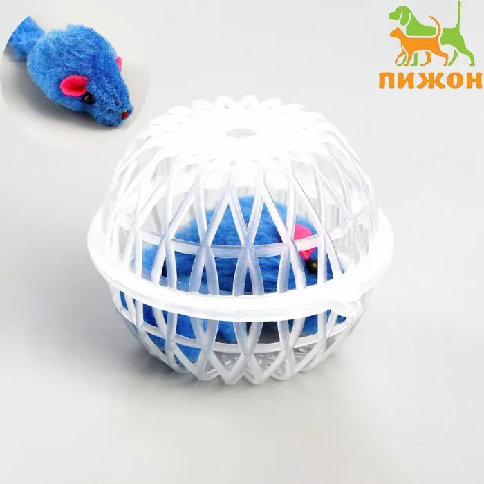 Мышь в пластиковом шаре, 7 х 5 см, прозрачный шар/синяя мышь — Характеристики