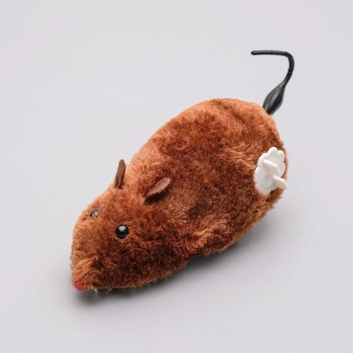 Мышь заводная меховая, 12 см, коричневая
